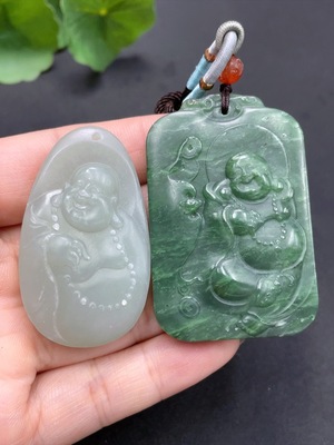 H13479397 Hetian Jade Pendant - Buddha, Total Weight (including rope) 64.7g