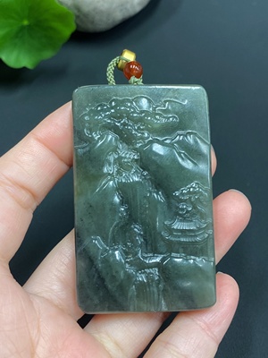 H13510874 Hetian Jade Pendant Landscape Plaque Total Weight (including rope) approx. 53.6g