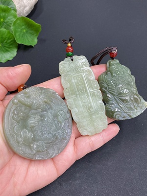 H24833671 Hetian Jade Pendant Total Weight Approx. (with rope) 122.4g