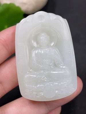 H36226393 Hetian Jade Pendant Amitabha Gross Weight Approx. 37.9g Containing Other Mineral Components