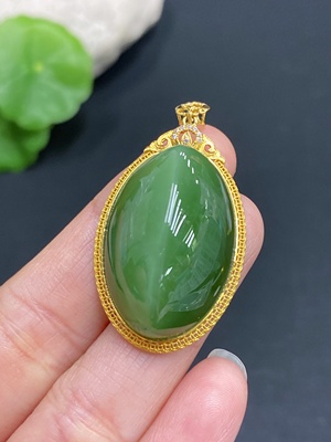 H34036005 Hetian Jade Cabochon Pendant with 18K Gold, Total Weight Approx. 2.1g