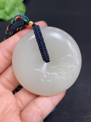 H36205598 Hetian Jade Pendant - Landscape Plaque, Total Weight (including rope): 63.6g