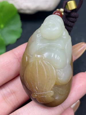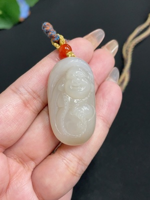 H32768344 Hetian Jade Pendant - Buddha Bead with Non-Hetian Jade Accessories, Total Weight (Including Cord): Approx. 24.8g