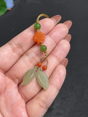 H34054696 Hetian Jade Pendant, Total Weight Approx. 4.7g, with Southern Red Agate