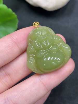 H35193682 Hetian Jade Pendant - Buddha with 18k Gold Clasp, Total Weight Approx. 11.4g