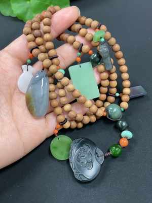 H38470663 Hetian Jade Pendant, Total Weight Approx. 49.3g, Undetermined Skin Color Origin, Beads Not Hetian Jade