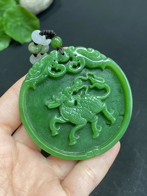 H21413433 Hetian Jade Pendant Kylin Total Weight Approx. (Including Rope) 54.1g