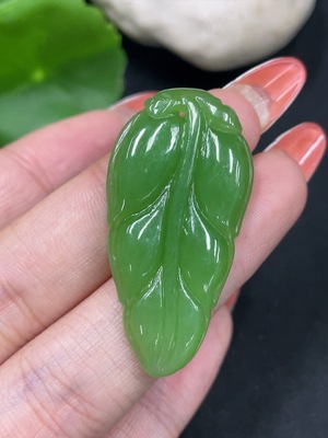 H34027783 Hetian Jade Jasper Pendant Leaf Total Weight Approx.6g