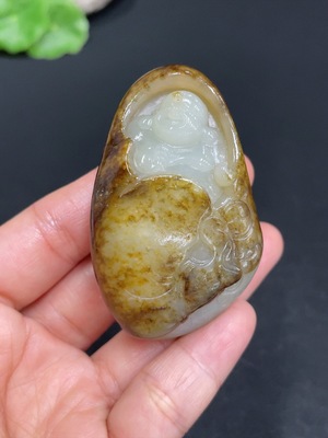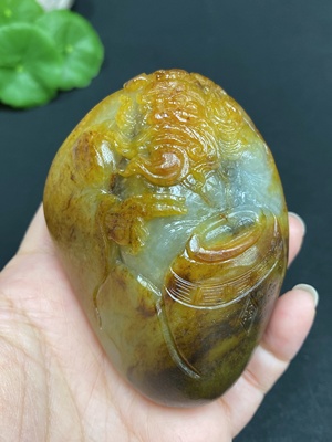 H31615454 Hetian Jade Ornament - Yellow Jambhala (Undetermined skin color origin, contains other mineral components, total weight approx. 145.5g)