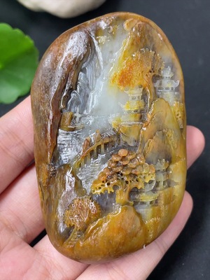 H37461509 Hetian Jade Handheld Carving Landscape, Undetermined Skin Color Origin, Containing Other Mineral Components, Total Weight Approximately 120.3g