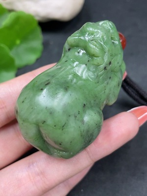 H34960896 Hetian Jade Jasper Handheld Ornament Pi Xiu with Other Mineral Components
