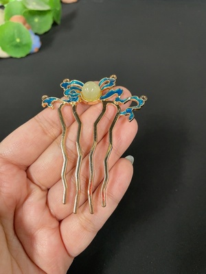 H37387641 Hetian Jade Inlaid Hairpin, Approx. 9.5mm, Total Weight Approx. 8.7g, Non-Gold