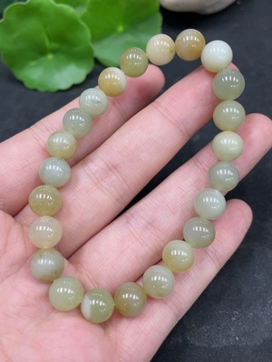 H35084989 Hetian Jade Bracelet, approx. 8mm beads, total weight about 15.1g, containing other mineral components