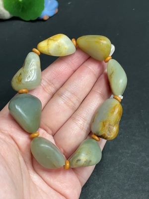 H28234518 Hetian Jade Bracelet, Undetermined Skin Color Formation, Contains Other Mineral Components, Beads Not Hetian Jade, Total Weight Approximately 88.3g