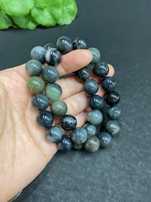 H33903807 Hetian Jade Bracelet with Other Mineral Components, Maximum Bead Size Approx. 11.8mm, Total Weight Approx. 86.9g