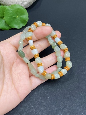 H34054735 Hetian Jade seed bead bracelet, undetermined skin color origin, contains other mineral components, accompanying beads not Hetian Jade, total weight approximately 85.7g