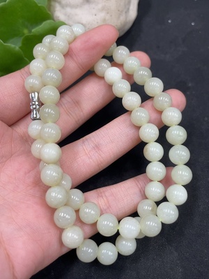 H35194885 Hetian Jade Bead Necklace, Approx. 7.8mm, Total Weight About 44.5g, Containing Other Mineral Components