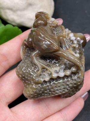 H33924913 Hetian Jade Handheld Piece "Fortune Croaking" with Other Mineral Components, Total Weight Approx. 112g