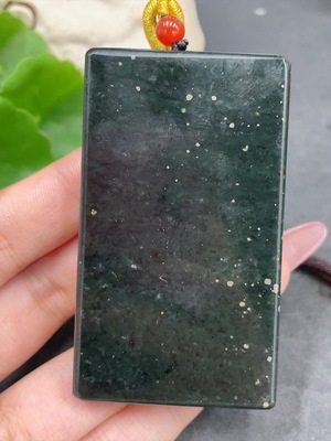 H29422599 Hetian Jade Handheld Piece - Abundance Every Year - Undetermined Skin Color Origin - Contains Other Mineral Components - Total Weight (Including Rope) Approximately 95.7g