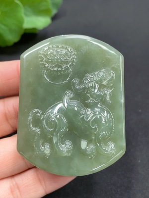 H33901748 Hetian Jade Pendant God of Wealth Pixiu Total weight (including rope): approx. 42.4g Color origin undetermined Contains other mineral components
