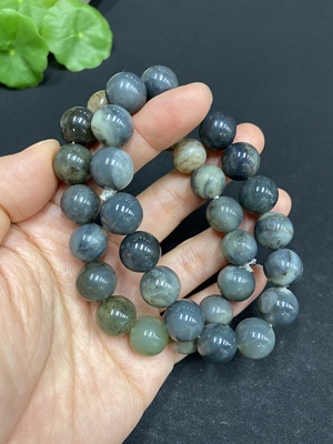 H33882138 Hetian Jade Bracelet, Approx. 9.6 mm Beads, Total Weight Approx. 28.2g, Contains Other Mineral Components