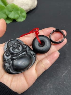 H36320989 Hetian Jade Pendant Buddha Peace Buckle Ring Size 51.8g Total Weight Approx. (with rope) 51.8g Color Origin Undetermined Contains Other Mineral Components Beads Not Hetian Jade