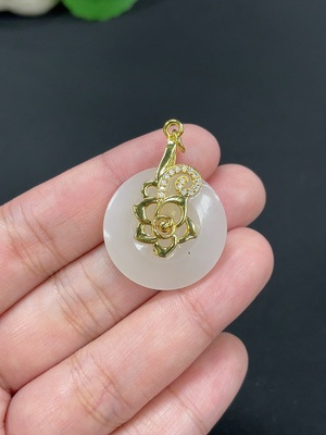 H37458321 Hetian Jade Inlaid Pendant Peace Button, Total Weight Approx. 6.8g, Non-Gold