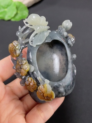 H37402013 Hetian Jade Ornament - Butterflies in Love with Flowers, Total Weight Approx. 73.2g, Undetermined Skin Color Origin, Contains Other Mineral Components