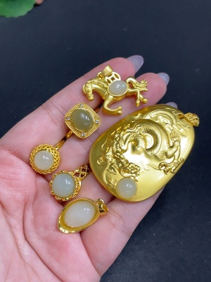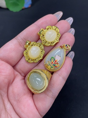 H3310254 Hetian Jade Inlaid Ring Total Weight 2.8g (Non-Gold Inlaid)