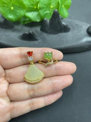 H27061045 Hetian Jade Inlaid Pendant Adjustable Ring Non-Gold Inlaid Total Weight Approx. 15.6g