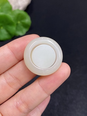 H38505953 Hetian Jade Ring with Inlaid Ring, Total Weight Approx. 6.5g, Non-Gold