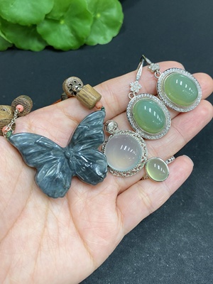 H33940001 Xiuyu (serpentine jade) pendant earrings adjustable ring non-gold inlaid total weight approx. (including rope) 43.6g
