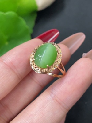 H37414262 Hetian Jade Jasper Inlaid Ring Size 14 No Stamp 18k Gold Content Tested Non-Diamond Total Weight Approx. 3.1g
