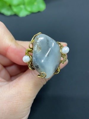H38530574 Hetian Jade Inlaid Pendant Adjustable Ring Non-Gold Inlaid Total Weight Approx. 19.7g