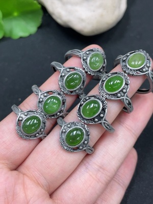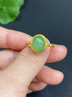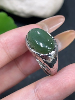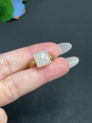 H05515472 Hetian Jade Cabochon Inlaid Ring (Non-Gold Setting, Total Weight 3.6g)