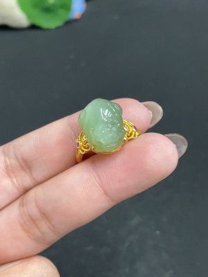 H36213641 Hetian Jade Inlaid Auspicious Beast Adjustable Ring