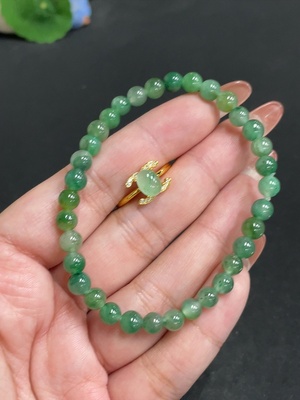 H34062819 Hetian Jade Inlaid Pendant, Adjustable Ring, Hand String (Bead Size Approx. 5.8mm), Non-Gold Inlaid, Total Product Weight Approx. 14.6g