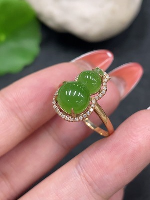 H32781772 Hetian Jade Open-end Inlaid Ring