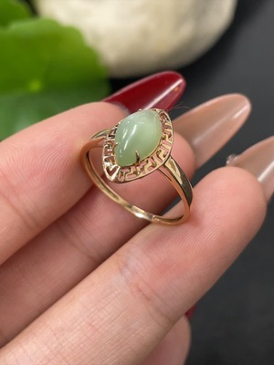 H36259285 Hetian Jade Inlaid Ring with Diamond Accents, Size 14, 74% Gold Content, Total Weight Approx. 3.3g