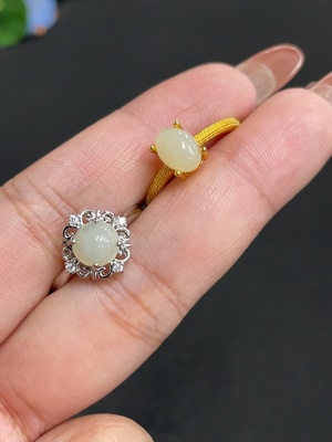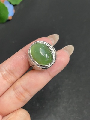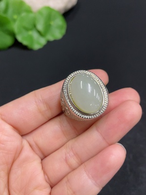H28308932 Hetian Jade Inlaid Adjustable Ring