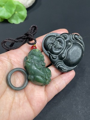 H35130719 Hetian Jade Pendant + Ring Size 18 Total Weight Approx. 9.7g
