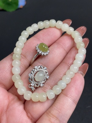 H33881166 Hetian Jade Bracelet Inlaid with Adjustable Ring