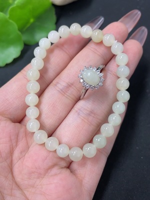 H39632958 Hetian Jade Bracelet + Adjustable Inlaid Ring Non-Gold Total Weight Approx. 11.4g