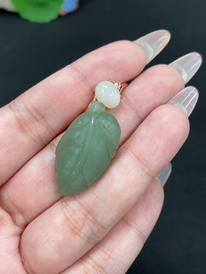 H39606981 Hetian Jade Pendant Leaf Adjustable Ring Non-Gold Inlaid Total Weight Approximately 9.8g