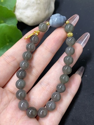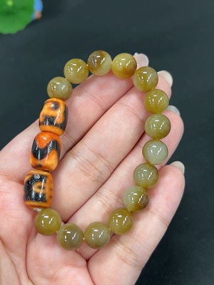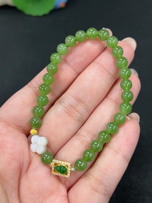 H40703083 Hetian Jade Bracelet, approx. 5.9mm, total weight approx. 10.1g, matching beads not Hetian Jade, not gold