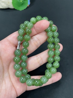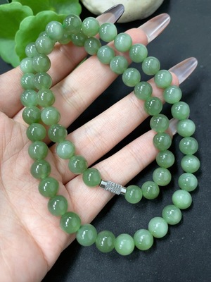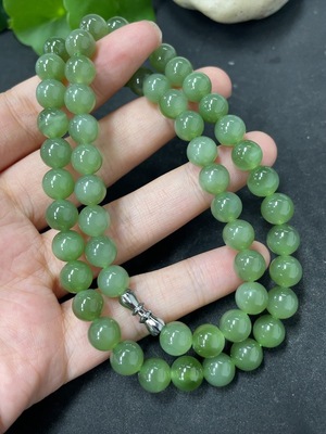 H38540597 Hetian Jade Bead Necklace, Approx. 7.8mm, Total Weight Approx. 45.3g