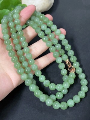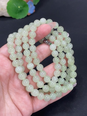 H36341852 Hetian Jade Bead Necklace, approx. 7.8mm, total weight approx. 82.9g, non-Hetian Jade accessory beads
