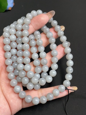 H30517928 Hetian Jade Bead Necklace, Approx. 5.8mm, Non-Gold Inlaid, Total Weight Approx. 36.4g