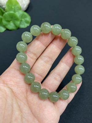H33847691 Hetian Jade Bracelet, Approx. 9.4 mm Beads, Total Weight About 27.9g