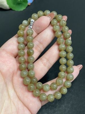 H32804783 Hetian Jade Bead Necklace, Approx. 7.7mm, Total Weight Approx. 43.6g